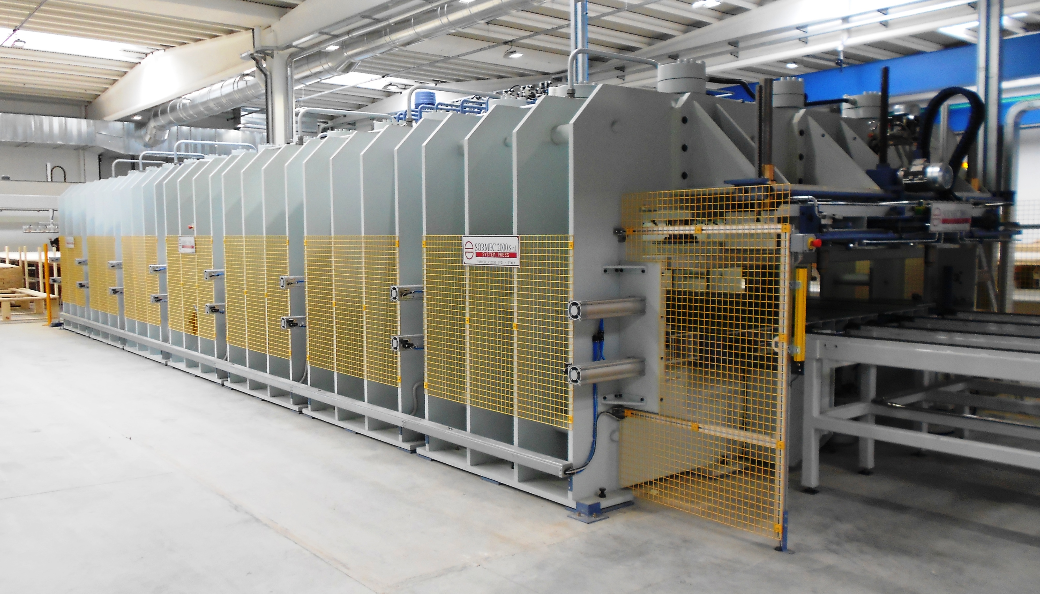 Pressa idraulica modulare per pannelli XLAM.